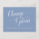 Simples Moderno Minimalista Dusty Blue Branco Mudança de Planos Elegante Estiloso Script Caligrafia Anúncio de Cancelamento de Casamento Postponement Cartão Postal