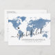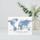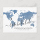 Textura de aquarela azul empoeirada no mapa mundial cartão postal para reprogramar ou adiar casamento de destino com texto totalmente editável para que você possa explicar o máximo, ou o mínimo que desejar, e fornecer um site para os convidados verificarem atualizações e alterações. —— Clique em PERSONALIZAR MAIS para mover o coração, alterar a cor do fundo e do texto, alterar as fontes ou reorganizar tudo e criar seu próprio design usando nossa arte exclusiva de mapa de folha de ouro falso. —— Perfeito para locais de casamento de destino tropicais, praias, ilhas, cidades, montanhas e aventuras em todo o mundo. Verifique nossa loja de design para itens coordenados ... mais tarde. Nós temos isso.