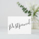 Este simples e elegante cartão de mudança de data de adiamento pode ser personalizado com os detalhes do seu adiamento. O verso tem informações adicionais, incluindo o seu site, com o seu endereço de retorno e espaço para o endereço do seu destinatário. Perfeito para casamentos e outros eventos especiais ao longo do ano! Criado por Thisisnotme©