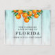 Movida para Laranjas da Flórida contra um Cartão Postal de Anúncio de Novo Endereço da Cerca Aqua... Nossa mudança de endereço, colorida, apresenta muitos pedaços de laranjas na Flórida, com galhos e folhas juntas... então você sabe que seu JO matinal será espremido recentemente do jardim. As laranjas são colocadas contra uma cerca aqua-aquarela, lembrando os lindos céus azuis e oceanos que a Flórida tem para oferecer. E agora você mora aqui! (Eu digo aqui, porque eu também.) Todo o texto na frente e atrás do nosso cartão de alteração de endereço pode ser personalizado com suas próprias informações.