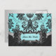 Convites de casamento em azul com damasco preto - Salve as datas ---combinam com o conjunto de convite abaixo. Cada lembrete de data apresenta um esquema de cores azul piscina e damasco preto. Você pode alterar a fonte do texto, a redação da cor para o que preferir clicando no botão personalizar laranja abaixo da demonstração. Você também pode apenas alterar as informações usando o modelo de demonstração à direita do cartão postal se estiver satisfeito com o tipo de letra, cores e tamanho.
