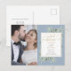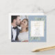 Com delicada folhagem em aquarela sobre um fundo azul empoeirado, este convite de casamento e anúncio botânico elegante pode ser personalizado com as suas fotos especiais de casamento e detalhes do evento de celebração. Concebido por Thisisnotme©