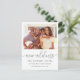 Simples e elegante caligrafia de "novo endereço" com sua foto e informações de novo endereço anúncio de mudança.