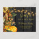 A moderna russa elegante família de Ação de Graças, com anúncio em movimento, cartão postal com um belo outono, outono, buquê de botânicos florais com abóbora e um roteiro de tipografia quic-ouro sobre um fundo de madeira marrom-escura.