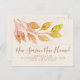 Este cartão postal de lançamento em movimento no outono apresenta folhagem simples de aquarela em tons de ferrugem. Diz "New Season New Home" em tipografia de escrita marrom-na moda num fundo creme. Facilmente personalizável. Original Watercolor © Michele Davies.
