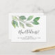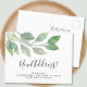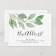 Este cartão postal de anúncio de mudança botânico é decorado com vegetação minimalista em aquarela e diz Nova Morada! em tipografia de roteiro elegante.