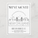 Um cartão postal de anúncio de mudança em estilo art déco moderno único para a bela cidade de Nova Orleans, Louisiana. Este cartão apresenta uma ilustração estilizada da linha do horizonte única da cidade com seu nome abaixo. Isto é seguido pelas informações do seu endereço num estilo de linha aberta correspondente. Todos os elementos individuais do cartão estão desbloqueados, então sinta-se à vontade para alterar ou adicionar quaisquer detalhes necessários usando a função de personalização.
