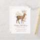 Mande cumprimentos festivos e partilhe seu novo e empolgante endereço com esta nova Reindeer Dourada. Apresentando uma surpreendente design de renas inspirada em folha de ouro cercada por uma elegante folhagem de inverno, este anúncio comovente de feriado combina perfeitamente a sofisticação moderna e o calor sazonal. Ideal para famílias que se mudaram recentemente, é uma maneira na moda de dizer Felizes Feriados de Nossa Nova Casa! Personalize o texto com seu nome, endereço e mensagem de feriado para uma manutenção sazonal única que seus amigos e familiares amarão.