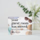 Cartão-postal de lançamento móvel da Tropical Beach Sand New Address Guest Room O design apresenta um roteiro moderno e tipografia de fontes e um coração numa praia tropical e férias de areia tropical, com a foto temática do seashell. Excelente para aqueles que se mudam para áreas ensolaradas, tropicais, de praia ou cidades como a Flórida ou a Califórnia.
