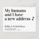 Meu Humano e Eu Temos um Novo Endereço! Deixe seu melhor amigo anunciar sua mudança com este cartão de anúncio de mudança de pet fofo e engraçado.