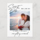 Casamento minimalista salva o cartão postal do anúncio. Ele apresenta o script de data de tipografia, foto do solteiro, nomes e data na frente. Personalize ainda mais a sua mensagem no verso.