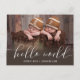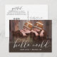 Duas congratulações! Caligrafia "olá mundo" com estatísticas no verso do cartão postal. Cartão simples disponível neste design. Veja esta coleção.