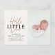 Anúncio de nascimento simples e elegante com foto de roteiro moderno. Suporte de bolinhas modernas.