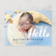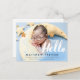 Tipografia de roteiro branco com a palavra "olá" foto nuvens azuis sonhadoras sobrepostas e estrelas douradas design. Foto Anúncio de Nascimento de Bebê Cartão Postal para um menino menino