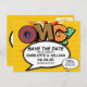Personalize com seus nomes e detalhes para anunciar a data de seu evento especial. O pop de quadrinhos com arte tem o tema moderno, divertido design, perfeito para casamentos, chás de panela, chás de fraldas, batismos, festas de noivado, comemorações de aniversário, graduações, festas de aniversário e outros eventos especiais ao longo do ano! Uma design legal, moderna e divertida que coloca o golpe no seu dia. Desenvolvido pela ComicBookPop © em www.zazzle.com/comicbookpop*