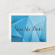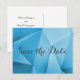 Casamento com Tons de Jewel afiados e modernos Salve o Cartão-Postal com um fundo triangular geométrico azul escondido. Esta design é uma escolha única para anunciar um casamento moderno. Fácil de personalizar com seus detalhes de casamento. Clique em "Personalizar" para encontrar mais opções de personalização.