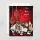 Cartão postal "nós mudamos". Red Black Check fundo, com pássaros coloridos, cães-tigre. Personalize com seu próprio texto.