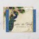 Cartão Postal De Anúncio Pavão e Penas Formal Salvar Data Real Azul