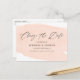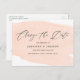 Precisa mudar sua data de casamento? Nossa mudança moderna é a data em que os cartões postais do adiamento do casamento são perfeitos para ajudá-lo a notificar os convidados da sua nova data de casamento. A na moda, foto, muda a data do cartão postal com "Change the Date" em um roteiro de caligrafia moderno com um fundo aquoso cor de pêssego. Personalize o postal adicionando seus nomes, endereço de devolução, detalhes do casamento, site do casamento, etc.