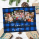 Não há lugar como casa para as férias. Avise os amigos e a família sobre sua mudança nesta temporada de festas com esta colagem de três fotos em azul rústico e xadrez de búfalos pretos. Personalize este anúncio comovente de feriado com as suas 3 fotos, nome e novo endereço favoritos. COPYRIGHT © 2020 Judy Burrows, Black Dog Art - Todos Os Direitos Reservados. Cartão-postal de Xadrez Azul de Feriado de Personalizado 3 Foto Nova Casa