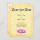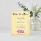 Guardar Personalizado Cartões postais de anúncio de casamento com espaço para noiva e noivo, cidade de data de casamento e outras informações em letras de escrita, Guardar a Data em letras gotas vintage e a arte do chinelo de vidro da Cinderela num travesseiro de cor rosa claro e escuro num fundo de pergaminho falso. Clique em Personalizar para alterar as fontes, as cores de fundo, adicionar uma foto e mais, até salvar o design para mais tarde.