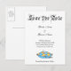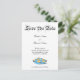 Cartões-postais de anúncio de casamento personalizados Salve a Data com espaço para noiva e noivo, data do casamento, cidade e outras informações em letras manuscritas, Salve a Data em letras góticas vintage e arte do chinelo de vidro da Cinderela em uma almofada em azul turquesa e laranja. Clique em Personalizar para alterar as fontes, cores de fundo, adicionar uma foto e mais, até mesmo salvar seu design para mais tarde.