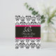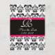 CARTÃO POSTAL DE ANÚNCIO PINK FUCHSIA NEGRO E MONOGRAMA BRANCA DE DAMASK