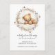 Um adorável convite de chá de fraldas de ursinho-de-orelha-d-água adorável com quadro floral e a expressão: "podemos esperar muito". Tipo de serifa moderno contrastado com tipografia de script.