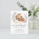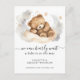 Um adorável ursinho de pelúcia adormecido com anúncio de gravidez de balão com a expressão: "podemos esperar muito". Um estilo giro de tendências para o seu grande anúncio. Tipo de serifa moderno contrastado com tipografia de script.