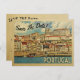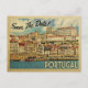 Vintage Portugal Save The Date (Salve os cartões postais de data) com uma cidade cênica no rio Duoro. Este legal design do século médio é a forma perfeita de reunir convidados para o casamento de destino de Portugal.