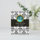 Cartão Postal De Anúncio PRETO E BRANCO DAMASCO Azul Água-Marinha Monograma