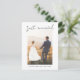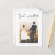 Cartão postal de anúncio de casamento simples e moderno com um script casual escrito à mão que diz "Recém-Casados" com corações em cima da sua foto. A mensagem no verso do cartão é editável.