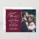 Cartão Postal De Anúncio Recem casados Merlot Red Elegant Foto de Casamento