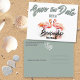 Envie o anúncio "Salvar a data" para uma reunião familiar ou outra ocasião especial com flamingos tropicais na frente. Personalize o texto frontal e traseiro nos campos de modelo ou edite usando a ferramenta design para selecionar um estilo de fonte, tamanho e cor preferidos. Isso pode ser personalizado para um chá de panela, festa de solteira ou outra ocasião.