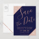 Cartão Postal De Anúncio Rosa dourado Azul marinho brilho script save the d