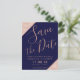 Tipografia Rosa dourado em azul marinho personalizável rosa dourado brilho bloco de cor, e falsas listras geométricas rosa dourado chique save the date casamento , perfeito para casamento elegante e sofisticado,