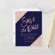 Cartão Postal De Anúncio Rosa ouro brilho escrita azul marinho salvar a dat