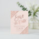 Tipografia rosa ouro em bloco de cor glitter rosa ouro personalizável e listras geométricas rosa ouro falsas chic salvar a data do casamento, perfeito para um casamento elegante e sofisticado,