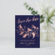 Cartão Postal De Anúncio Rosa ouro moderno azul marinho salvar a data do ca