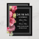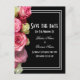 Um simples e bonito buquê floral de rosa rosa rosa rosa sobre fundo preto e fronteira branca tradicional, salve a design para casamentos brancos no jardim de verão para combinar com a sua suíte de papelaria de casamento e outras essências de noiva. Este casamento sofisticado e na moda elegante salva a data, pode ser facilmente personalizado com os nomes da noiva e do noivo para os modelos de texto para criar seu próprio casando personalizado feminino único, salvar a data para suas ocasiões, eventos e celebrações especiais de casamento. Visite a LOJA PERSONALIZED_ WEDDINGS para combinar conjuntos coordenados de casamento. PERSONALIZAR para ajustar o texto e a fonte.