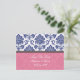 Cartão Postal De Anúncio Royal Blue e PInk Damask Salvar a data