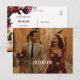 Deixe seu Save the Date definir o tom—romântico, pessoal e inconfundivelmente seu. Este cartão-postal de dupla face combina elegância atemporal com calor vintage, apresentando flores burgundy exuberantes de um lado e um layout de foto completa no verso para sua foto de noivado favorita. A tipografia limpa e clássica destaca seus nomes e data de casamento, enquanto a moldura floral adiciona um toque de beleza formal sem sobrepor sua imagem. Ideal para casais que planejam um casamento de outono ou com tema floral, este cartão personalizável está pronto para impressão, é compatível com o correio e fácil de personalizar. Não são necessários envelopes—basta adicionar seu endereço e enviar uma pequena beleza pelo correio.