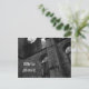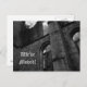 Um postal com uma foto de uma catedral gótica em ruínas em preto e branco. Diz "Nós nos mudamos!". Todo texto é facilmente alterável. Excelente para Góticos, renascimento e amantes medievais.