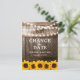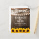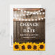 Girassol muda a data do cartão-postal com um fundo de carvalho-sertanejo, luzes de cordas cintilantes, girassóis amarelos-ouros, seu monograma e uma salva de modelo. Encontre outras mudanças nas placas do plano em www.zazzle.com/special_stationery.