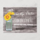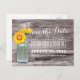 Cartão Postal De Anúncio Rustic Mason Jar & Daisy Wood Salve a Data