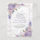 Moderno e trendy, este lindo cartão postal de Adiar a Data de casamento apresenta uma moldura roxa lavanda adornada com rosas e flores em aquarela lilás lavanda roxa, sobre uma textura de mármore branco falso e brilho dourado. O verso do cartão postal permite seu endereço de retorno e mensagem pessoal. Copyright Elegant Invites. Todos os direitos reservados.