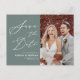 Sage Green Elegant Script Moderno Foto Minimalista Casamento Salve O Cartão-Postal De Anúncio De Data. Avise sua família, amigos e colegas que você marcou uma data para sua celebração de casamento com este casamento elegante, na moda e moderno, salve o cartão de convite. Todos os textos estão pré-organizados para que você personalize fácil e rapidamente com seus próprios detalhes.