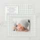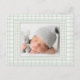 Cartão Postal De Anúncio Sage Green Gingham One Photo Gender Neutral Birth