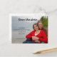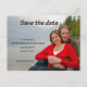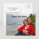 um cartão postal anunciando a data do casamento para um casal feliz.