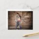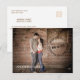 Como um carimbo postal em um envelope, este design tem a aparência de um selo na frente com um círculo de palavras que diz "salve a data - estamos nos casando". Personalizado com a data do seu casamento e nomes com uma foto tamanho normal apresentando o casal divertido. Uma ótima alternativa para cartões-postais tradicionais ou formais de save-the-date, este design é moderno, jovem e casual e tem muito espaço na parte de trás para personalizar com suas informações pessoais.